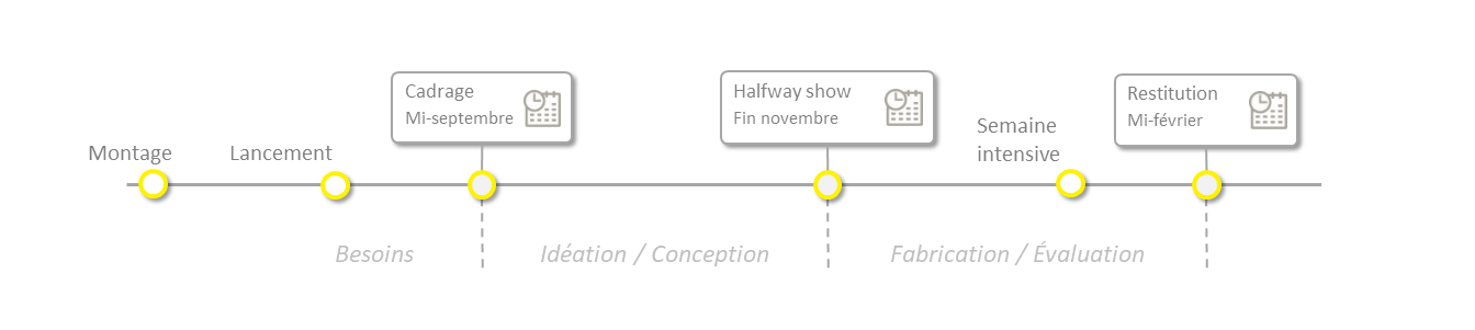 Pour relever le défi proposé, les étudiant·es vont créer, concevoir, et ajuster pendant 5 mois un prototype de produit et/ou de service fonctionnel qui sera testé en situation.